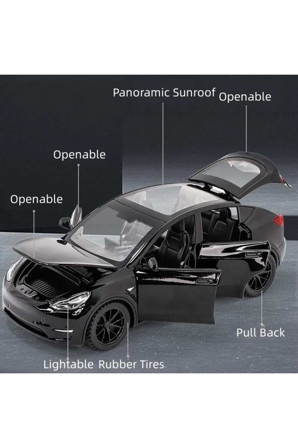 URUN İTHALDİR. TESLA MODEL Y 1:32 MODEL MAKET ARABA SİYAH