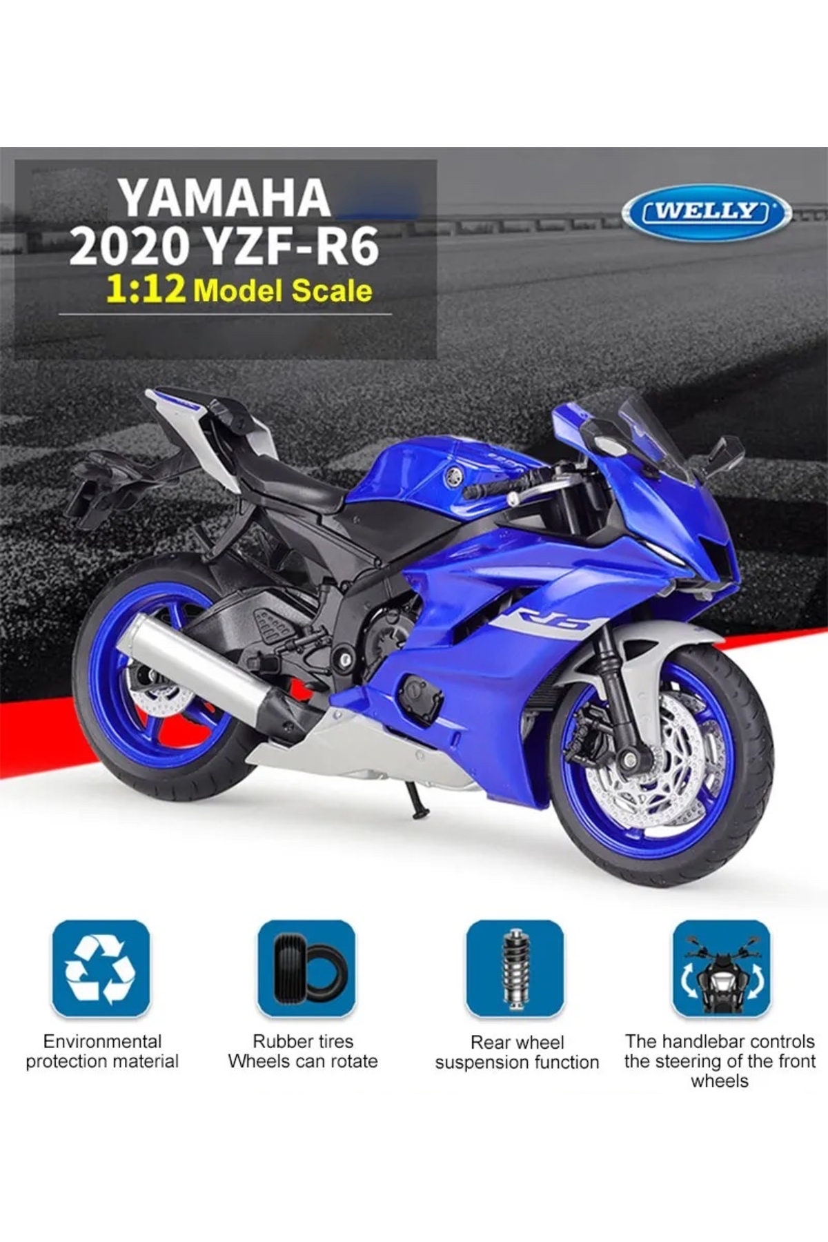 Urun ithaldir. YAMAHA YZF R6 1:12 MODEL MAKET METAL MOTOR MAVİ